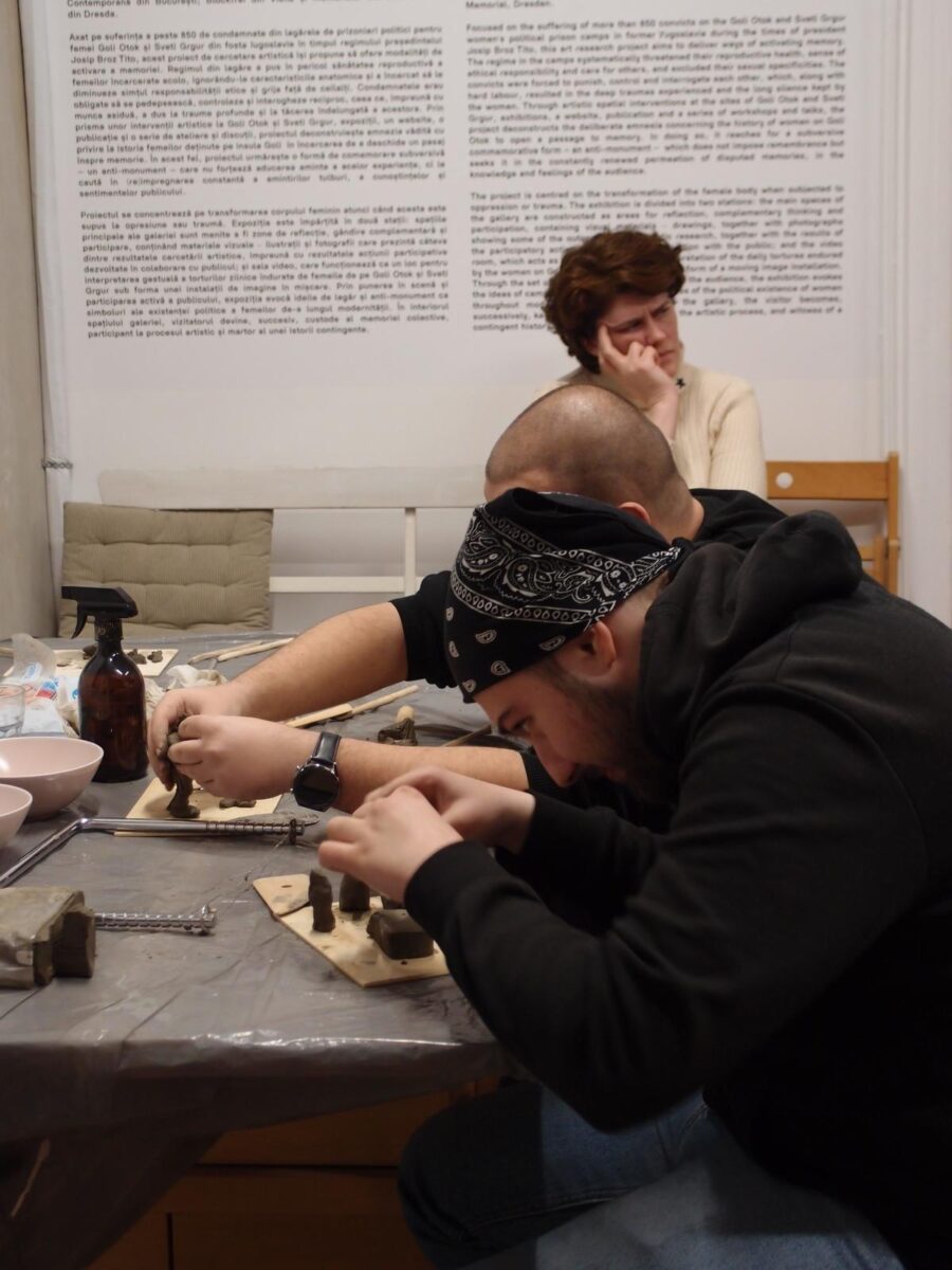 Cultural trauma is defined by the reactions of a society as a whole to a traumatic event that has broken the community’s social ties and destroyed its sense of togetherness; communism can be considered a “cultural trauma.” Historian Claudia-Florentina Dobre coordinated a clay modelling workshop attended by descendants of political prisoners from the communist period, followed by a reading session for which Claudia has selected pages from the memoirs of former convicts.